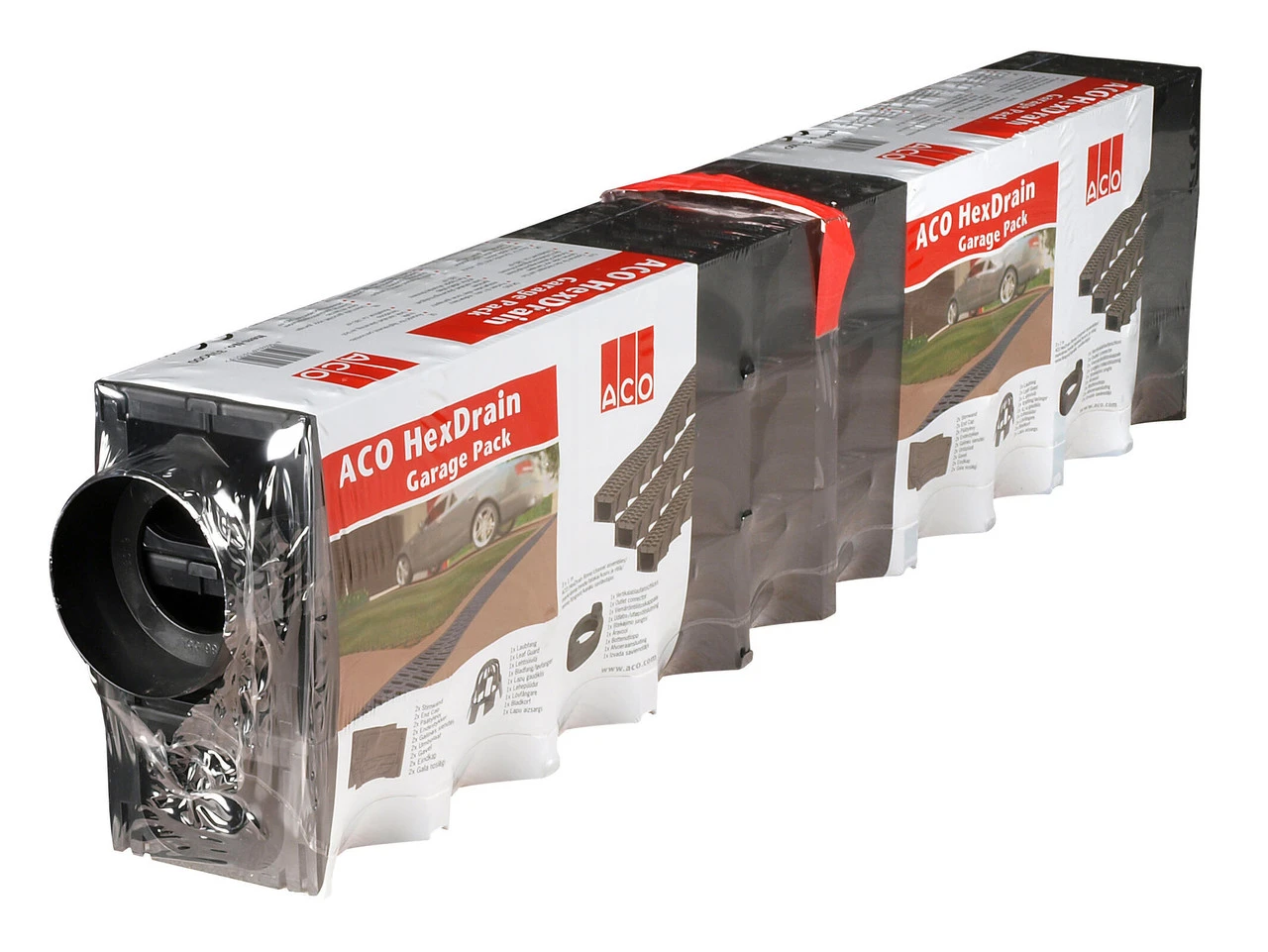 ACO Hexdrain garage pack A 15. Manufactured from recycled polypropylene, ACO HexDrain is suitable for domestic applications up to Load Class A 15 – Pedestrian, cycleways, minimally trafficked areas (light domestic vehicles only). The high quality ACO HexDrain channels clip together, allowing for quick and easy installation. ACO’s range of elegant and modern ‘Complete the Look’ gratings are available to provide choice and style to driveway and patio projects.
