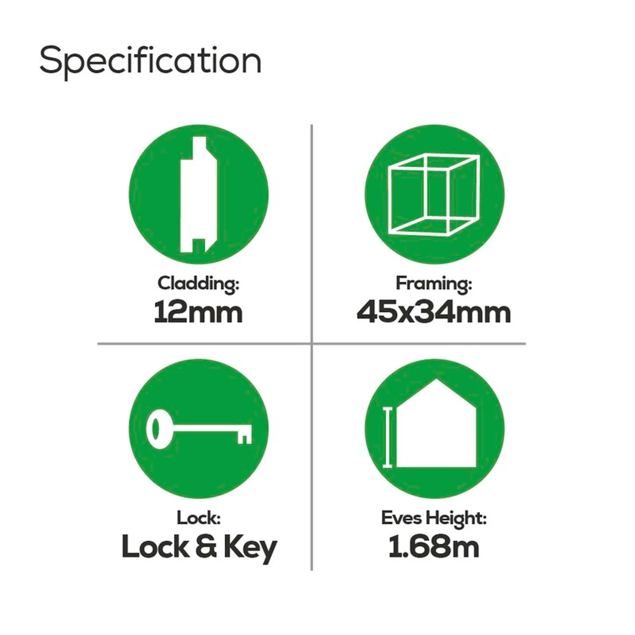 The 2.1m x 1.5m Norfolk Apex Shed is the best-selling shed in the Albany Apex roof shed range. This shed is constructed from tongue and groove shiplap even the floor and roof! Shiplap is advantageous as it allows water to run off it, this can increase its waterproof ability and will prevent draughts from penetrating between the boards. This shed is supplied with quality polyester roofing felt. The door is fully framed and braced, with three hinges. This shed has two windows side-by-side which allows in lots of natural light. The window side can be either the left or the right-hand side. The framing on this sturdy shed is 45mm x 34mm. There is a single door and it locks by lock and key. We recommend treating timber sheds within 6 months of installing. As with all timber products, regular treatment and maintenance is advised. Remember that you need a good solid base for your shed, check out our advice page for more info.