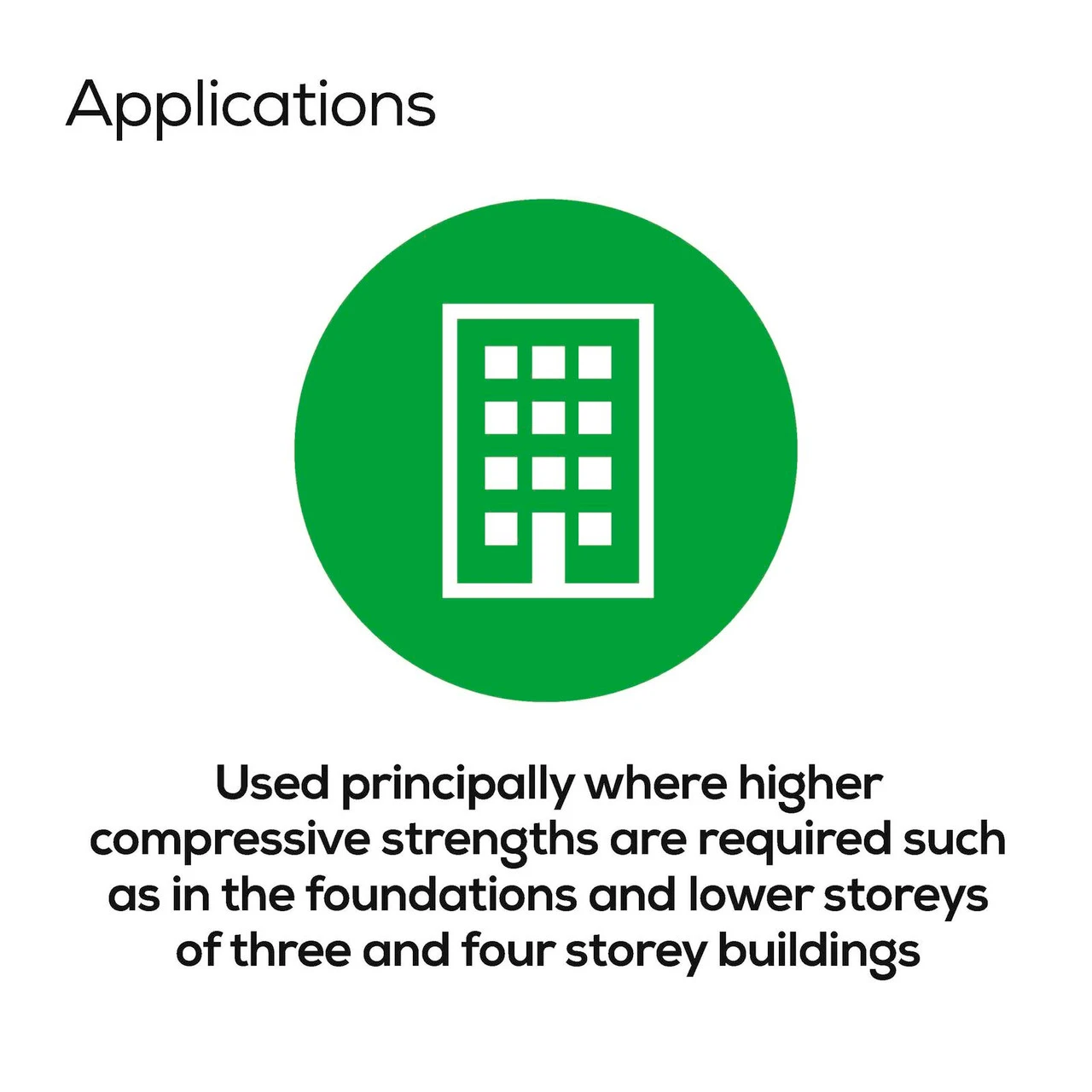 Celcon 440mm x 215mm x 215mm are High Strength Grade Blocks, produced for use in the internal and external leaf of cavity walls. The H+H High Strength Celcon block is an integral construction block and can be used to for a wide range of building needs, from building foundations to multi-storey buildings. Their high strength makes them ideal for applications such as building solid or separating walls. All Celcon Blocks are BBA certified and fire-resistant. High strength grade blocks are also used for partitions, flanking walls, and beam and block floors. High Strength Grade and Super Strength Grade are used principally where higher compressive strengths are required such as in the foundations and lower storeys of three and four storey buildings, piers under high vertical loads and in multi-storey buildings. Higher Strength grades are available in compressive strengths of 7.3N/mm2 and 8.7N/mm2 and in thicknesses from 100mm to 355mm (Super strength up to 150mm). They are third party accredited under BBA