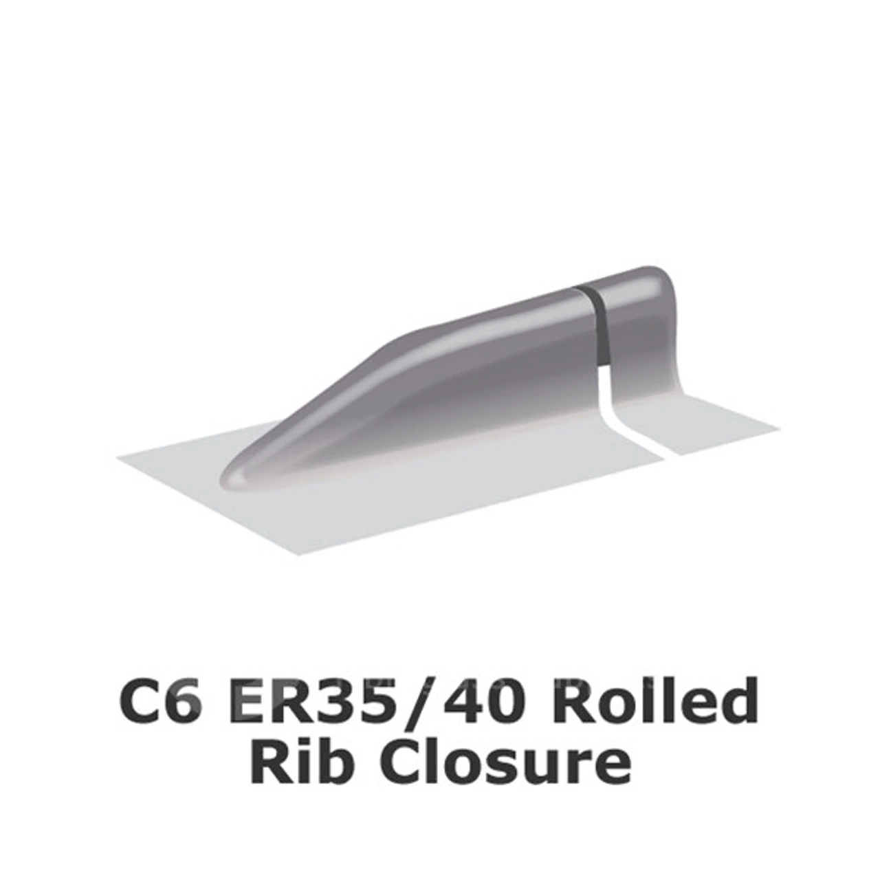 The Cure It Rolled Rib Closure is a preformed closure trim for use with ER35/40. Rolled rib joints for simulated lead appearance and unique high-bond finish are designed for use with roofing resin and topcoat- no delamination.