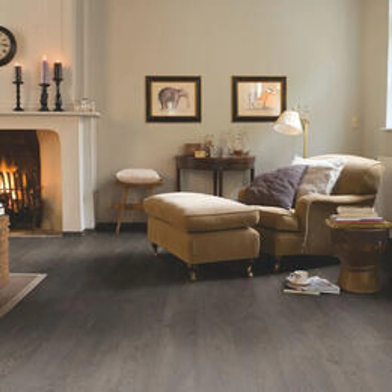 Quick Step Classic Oak Grey Laminate Flooring is a classic oak grey flooring that is a dark grey colour. This flooring has the gloss level of Silk and the pattern of the Quick Step Classic Oak Grey collection. The Quick Step Classic Old Oak Grey Laminate Flooring (1.596sq m) has an impression bevel and 4 grooves, with a hydroseal water resistant technology to make sure your floor lasts a long time. This floor can be installed using the Uniclic locking system for an easy installation process and comes with a 25 year warranty.