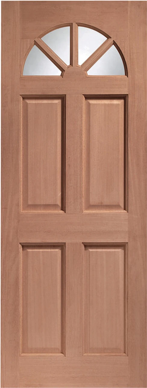 The Carolina Unglazed External Hardwood Door has a classic fan design, unglazed in dowelled hardwood door. The dowelled Carolina comes with a traditional fan light window design which is suitable for either single or double glazing. The Carolina has 4 raised and fielded panels that give it a traditional feel. This door is also available in clear single glazed glass.